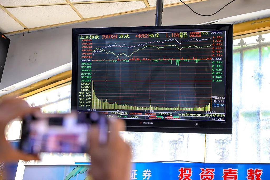 股民在证券交易大厅关注A股股市行情